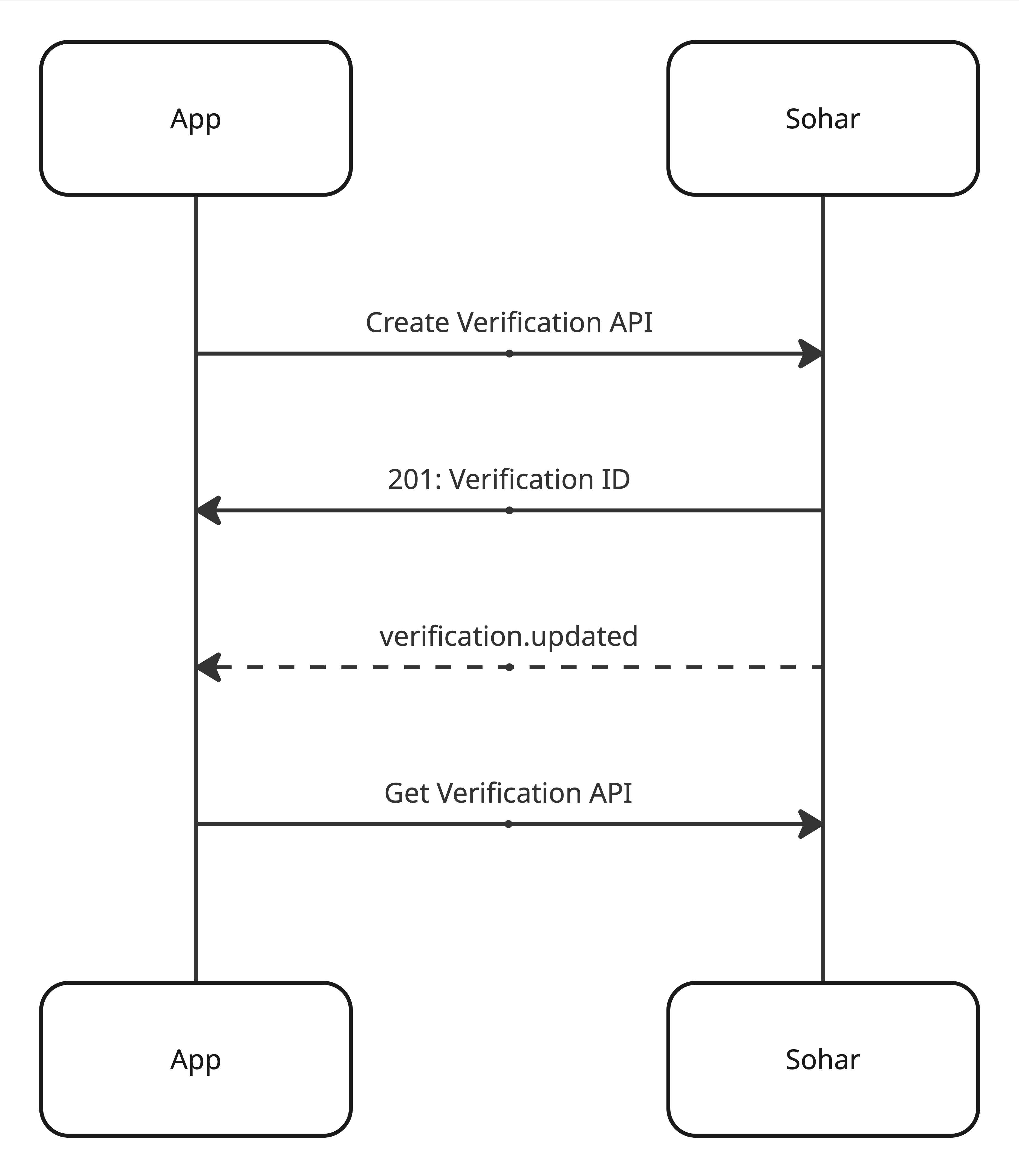 - Fire-and-forget: You submit a Verification request, we immediately return an ID
